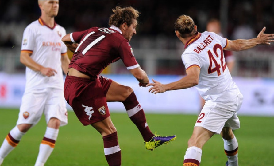 Alessio Cerci in azione in mezzo a Balzaretti e Bradley in Torino-Roma del 3 novembre 2013 (fonte)
